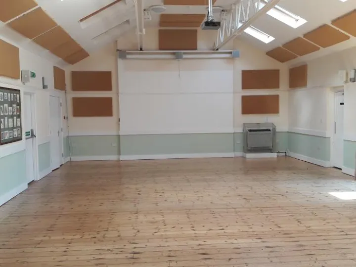 Main Hall: wood effect vinyl covered wooden sprung floor (temporarily, half the hall is carpeted)